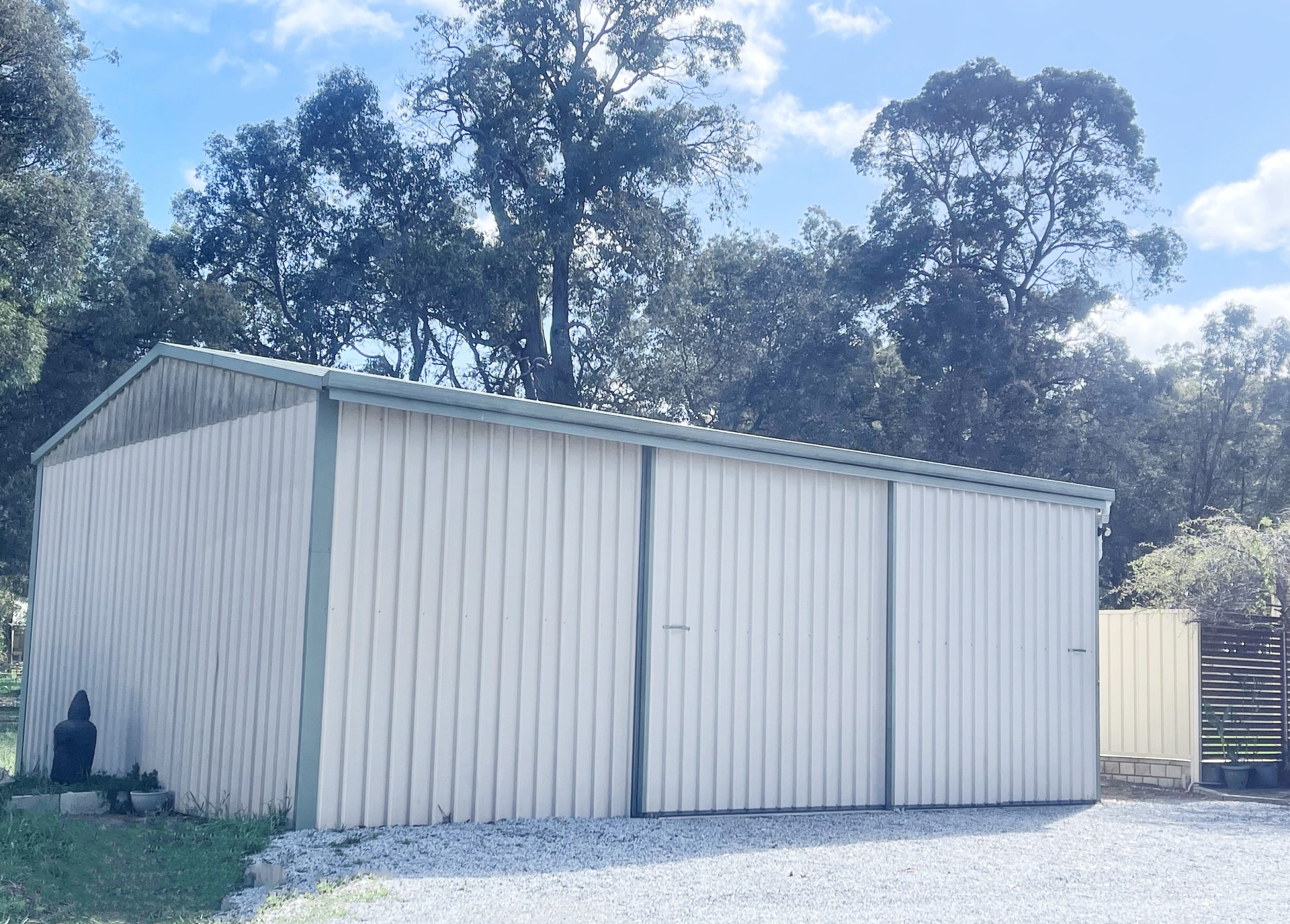 Enter the front gate, along with padlocks for animals and lovely plants, you will see a large high ceiling workshop installed with electric and lights. Infront of the house there are huge flat area for car parking, even big trucks turning around. Along the side of the beautiful garden, outdoor fire pit, rocks wall leading you to the bigger cleared land where your adorable horses could be your neighbors.